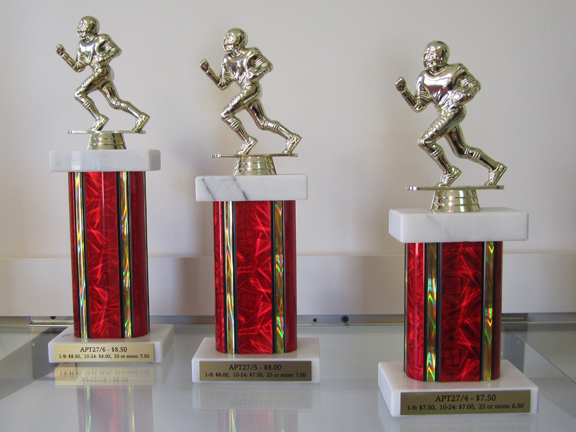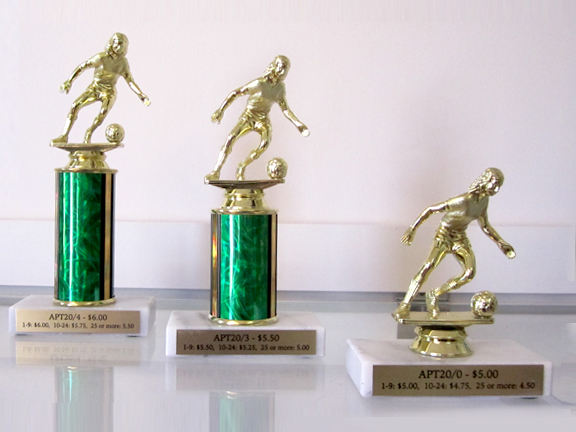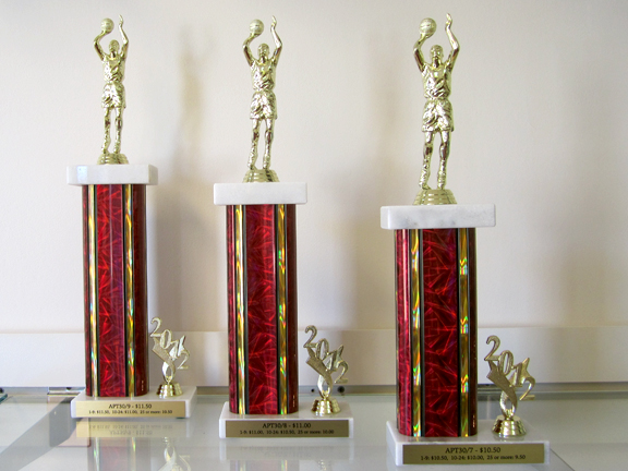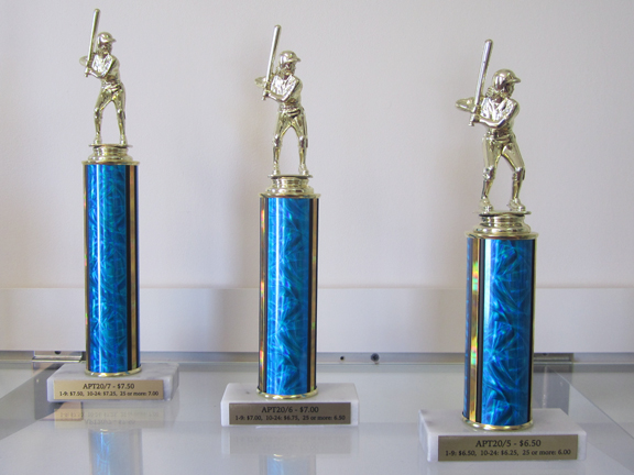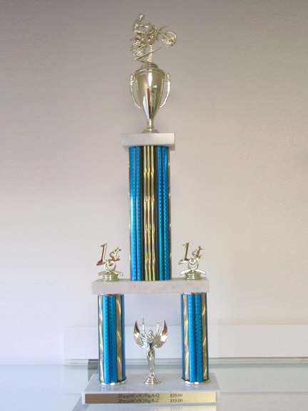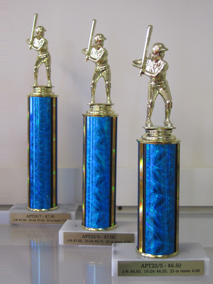 We use marble bases with the column color and figure of your choice. Each trophy includes 3 lines of wording. Quantity discount pricing is available when ordering 10 or more trophies. We also offer custom two, three, and four traditional column trophies